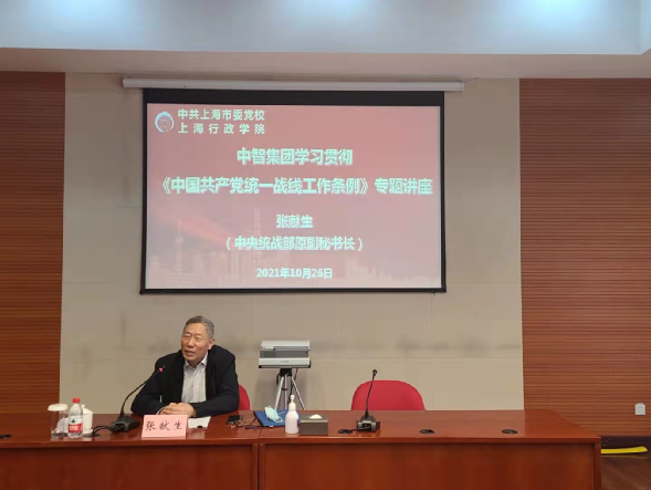 為深入推進(jìn)中智集團(tuán)統(tǒng)戰(zhàn)工作,切實(shí)發(fā)揮好統(tǒng)戰(zhàn)人士在新時(shí)代履行新使命中的重要作用,2021年10月26日,中智集團(tuán)在中共上海市委黨校(上海行政學(xué)院)舉辦《中國(guó)共產(chǎn)黨統(tǒng)一戰(zhàn)線工作條例》專題學(xué)習(xí)班,中央統(tǒng)戰(zhàn)部原副秘書長(zhǎng)、干部局局長(zhǎng)、研究室主任、新聞發(fā)言人張獻(xiàn)生作專題輔導(dǎo)解讀。集團(tuán)統(tǒng)戰(zhàn)干部和部分統(tǒng)戰(zhàn)代表人士參加學(xué)習(xí)班。
