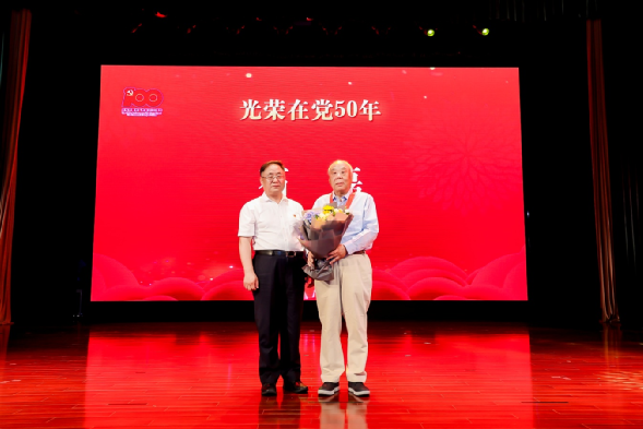 大會隆重舉行了“光榮在黨50年”紀(jì)念章頒發(fā)儀式,集團(tuán)黨委書記、董事長卜玉龍為集團(tuán)老領(lǐng)導(dǎo)、老黨員石磊頒發(fā)并佩戴紀(jì)念章,向他致以崇高的敬意,感謝他為中智集團(tuán)作出的積極貢獻(xiàn)。