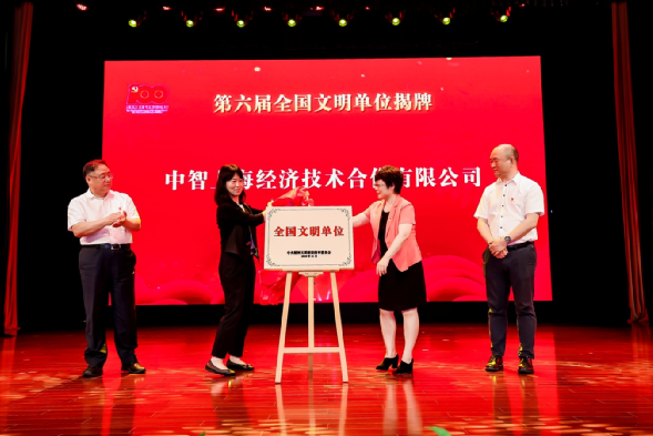 大會隆重舉行了全國文明單位—中智上海經(jīng)濟(jì)技術(shù)合作有限公司揭牌儀式,在集團(tuán)黨委書記、董事長卜玉龍和上海市文明辦副主任唐洪濤共同見證下,中智上海公司黨委書記、副總經(jīng)理李雙和上海市徐匯區(qū)委宣傳部副部長、文明辦主任楊海英共同揭牌。