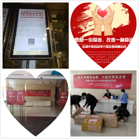 重宣傳,擴大慈善捐贈“朋友圈”。活動前期,深圳公司不僅通過郵箱、微信群、微信公眾號向公司全體員工及合作伙伴發(fā)起倡議,同時聯合新聞大廈物業(yè)加強宣傳,通過線上電梯廣告全天滾動播放、線下1樓設置實物捐贈點相結合,附以KT版展架、橫幅等多元化宣傳載體,積極宣傳、動員廣大社會愛心人士參與本次捐贈活動。